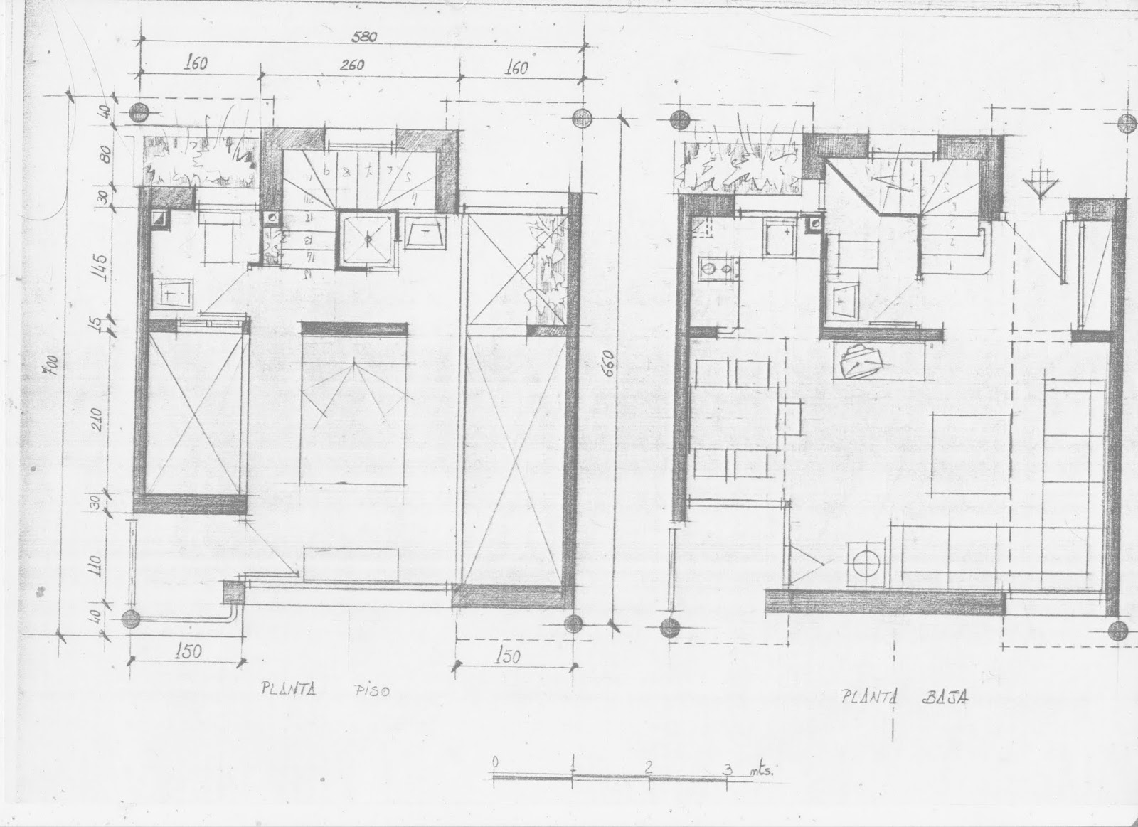 Se trata de bocetos hechos a mano, a escala y en tablero de dibujo.
